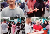 Teks. Foto : Keluarga Besar SMSI di wakili oleh Ketua SMSI Kota Binjai Siswanto Ihsan SE diabadikan saat membagikan sarapan gratis dan air mineral…